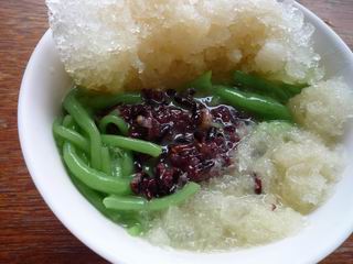 日本も暑いらしいけれど、タイも相変わらず暑い。そんな時には冷たいカキ氷である。私のお気に入りのお店では、チマキが食べられる。